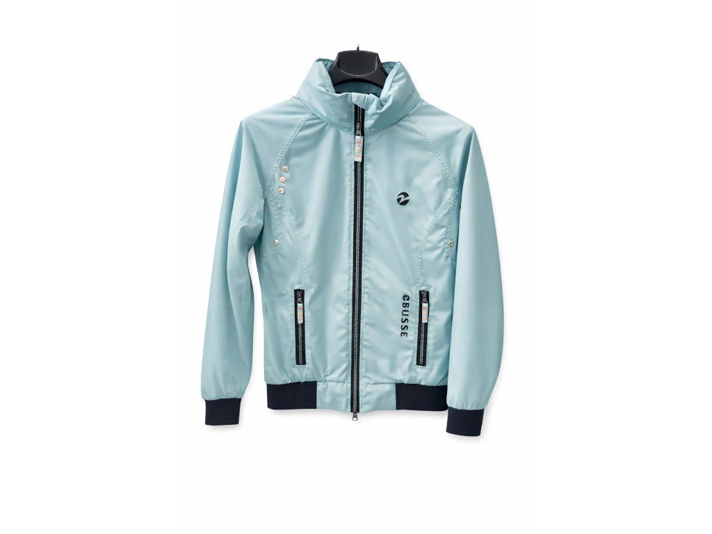 Lehká sportovní bunda BUSSE ve světle modré barvě s vysokým límcem, zipem a kapsami na zip. Pohodlný střih s elastickými manžetami, ideální pro každodenní nošení i volný čas.