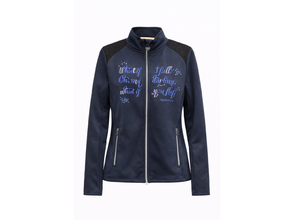 Pohodlná dámská mikina z kvalitního materiálu v tmavě modré barvě. Má projmutý střih, zapínání na zip a dvě praktické kapsy. Výrazná výšivka na přední části dodává originální vzhled.