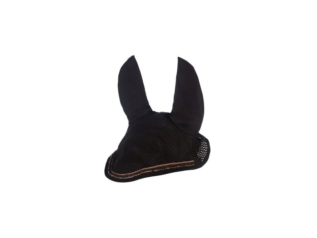 Elegantní čabraka, která chrání uši koně před hmyzem a zabraňuje rozptylování během tréninku. Vyrobena je z kvalitního polyesterového materiálu, s elastickými uši pro maximální pohodlí koně. Čabraku zdobí dvoubarevná paspulka a jemné kamínky, které jí dodávají elegantní vzhled.