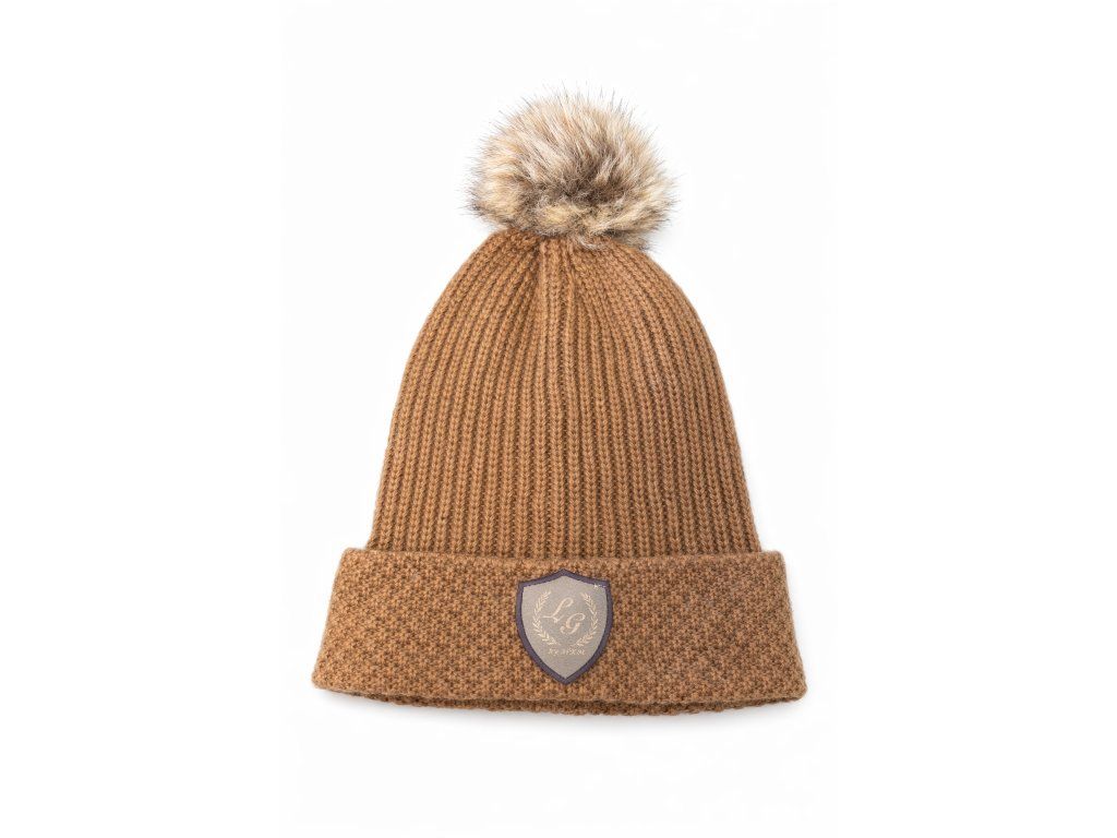 Pletená čepice v hnědém odstínu s jemným žebrováním a ohrnutým lemem. Příjemný materiál zahřeje i v chladném počasí a dobře se přizpůsobí hlavě.