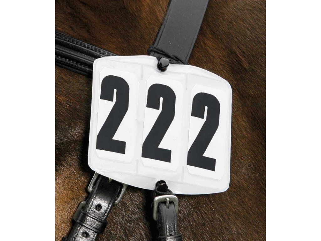 Měkké, hladké plastové číslice pro citlivé koně. Snadná změna čísla. Nastavitelné od 1 do 999. Včetně gumiček pro upevnění. Pár.