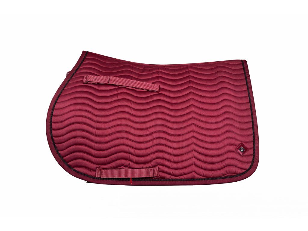 Vínová podsedlová dečka s elegantním vlnkovým prošíváním. Lemování v tónu s kontrastním černým paspulem dodává moderní vzhled. Dečka je vybavena praktickými poutky pro uchycení k sedlu a malým decentním logem na boku. Ideální pro každodenní ježdění i stylový trénink.