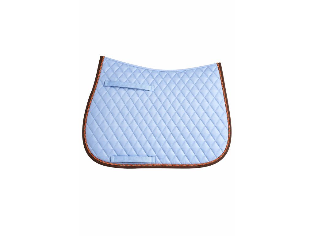 Světle modrá podsedlová dečka s elegantním diamantovým prošíváním, které zajišťuje rovnoměrné rozložení tlaku a pohodlí pro koně při jízdě. Díky kvalitnímu zpracování a měkkému polstrování je vhodná pro každodenní trénink i sportovní využití.