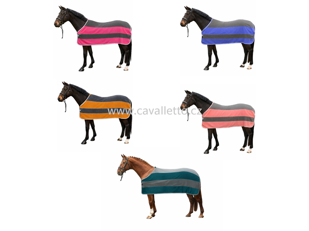 Stylová a funkční odpocovací deka v moderní kombinaci barev, je ideální pro každodenní použití. Díky kvalitnímu fleecovému materiálu efektivně odvádí vlhkost a pomáhá koni rychle oschnout bez prochladnutí.