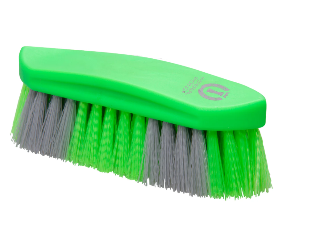 Tvrdý dandy kartáč s dvoubarevným designem. Polyesterové štětiny s plastovými zády.
