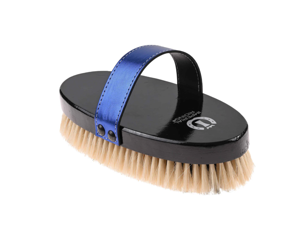 Měkký kartáč se štětinami z koňských žíní a hřbetem z bukového dřeva. Kožený popruh poskytuje bezpečný a pohodlný úchop.