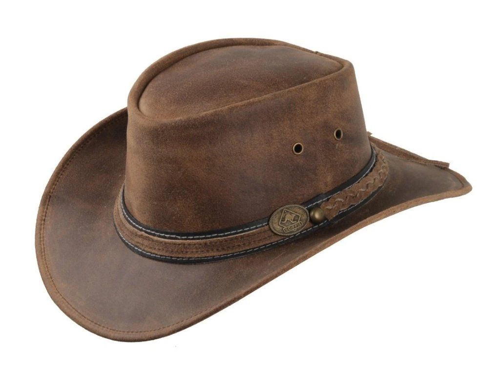 Irving od značky SCIPPIS je robustní kožený klobouk vyrobený ze silné impregnované hovězí kůže, která zajišťuje vysokou odolnost vůči nepříznivému počasí.