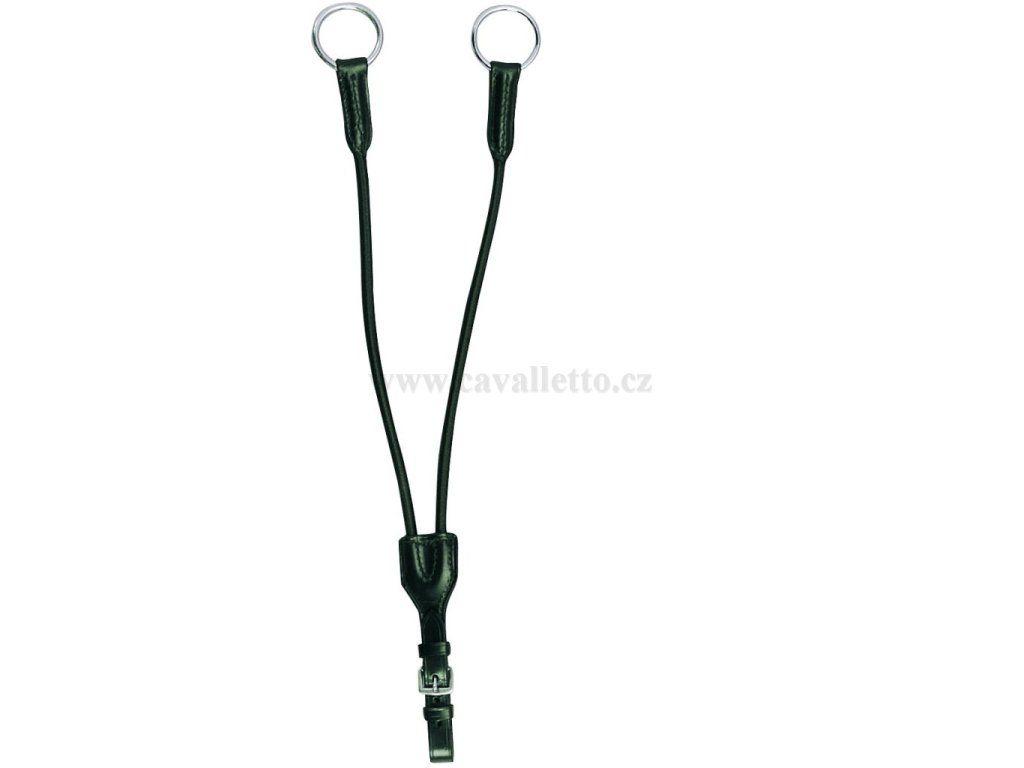 S elastickými vidlicemi, pro připevnění k poprsníku. Rozteč prstenců se mění pomocí koženého jezdce.