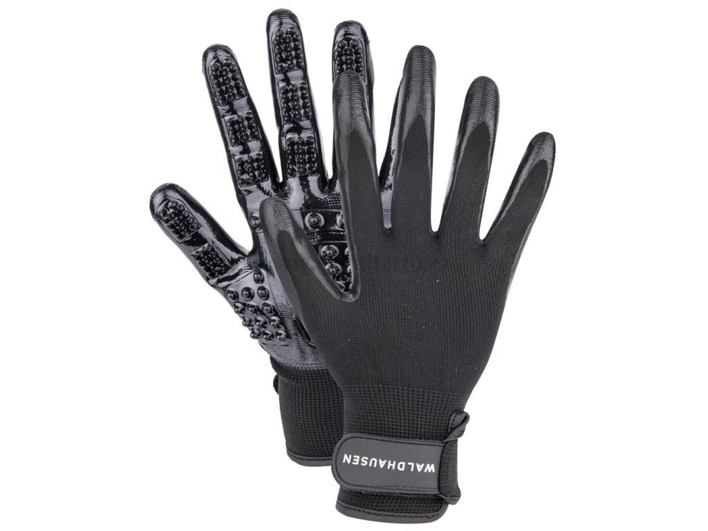 Díky praktickému tvaru 5 prstů a manžetě s nastavitelnou Velcro je zabráněno uklouznutí během péče a masáže. Speciální struktura hrbolů na dlani spolehlivě odstraňuje volné vlasy a nečistoty a může pomoci zlepšit krevní oběh zvířete.