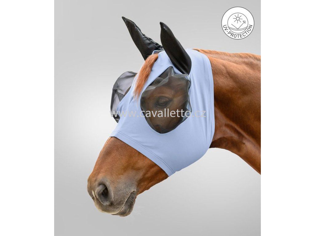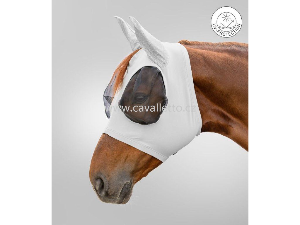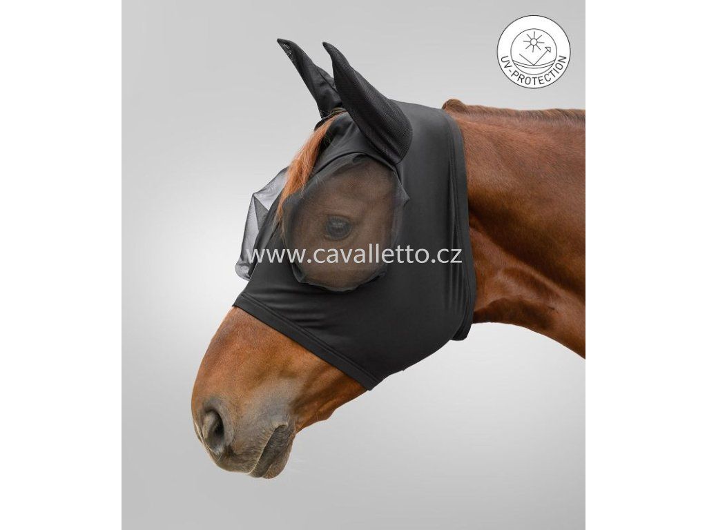 Flex maska se snadno nasazuje díky elastickému materiálu a dobře se přizpůsobuje koňské hlavě.