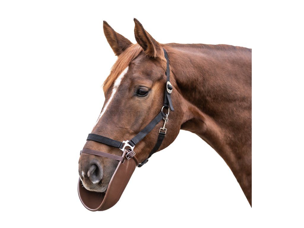 Ochrana z pevného plastu, která se připevní k ohlávce.