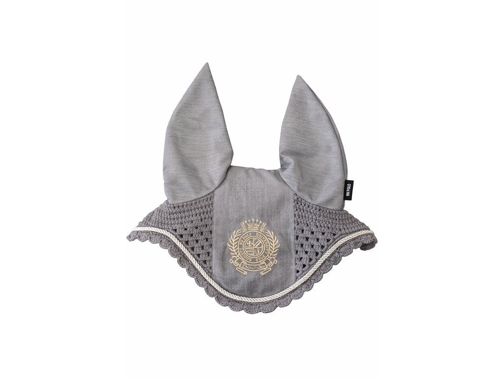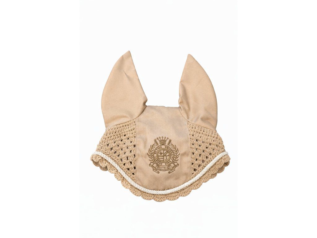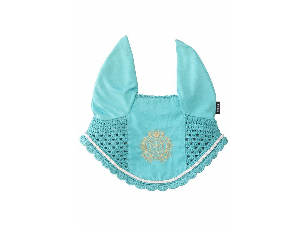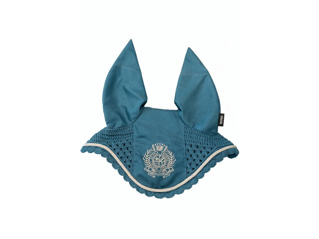 Stylová čabraka chrání uši koně před hmyzem a tlumí okolní hluk. Kombinace pevného materiálu na uších a prodyšné háčkované části zajišťuje pohodlí při nošení. elegantní design doplňuje dekorativní lemování a výrazná výšivka na čele. Ideální pro trénink i závody.