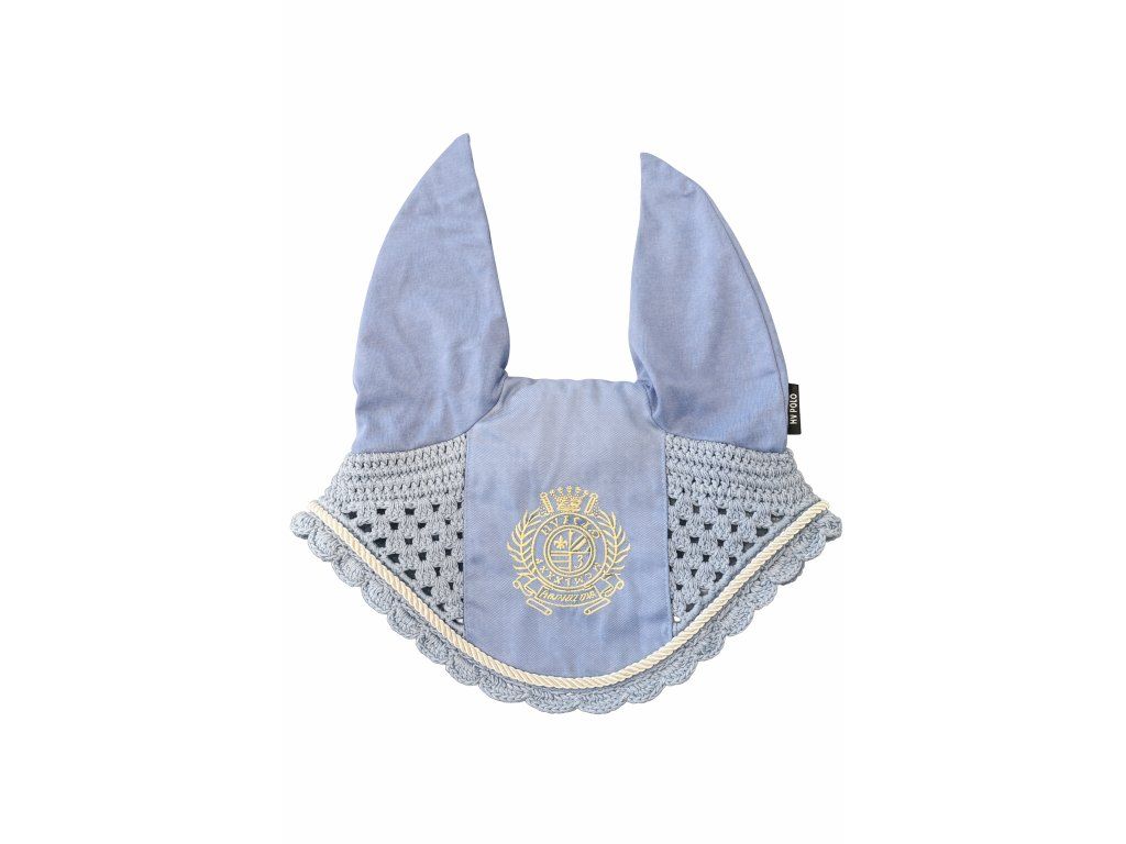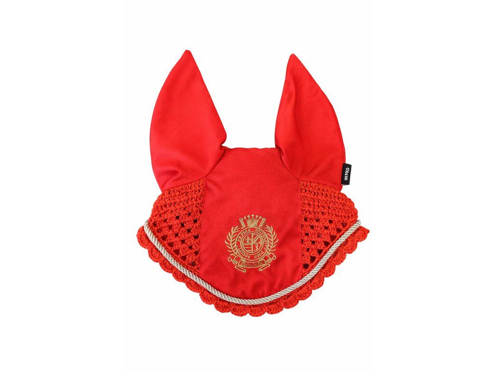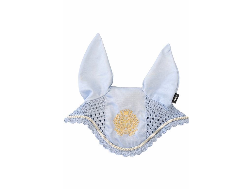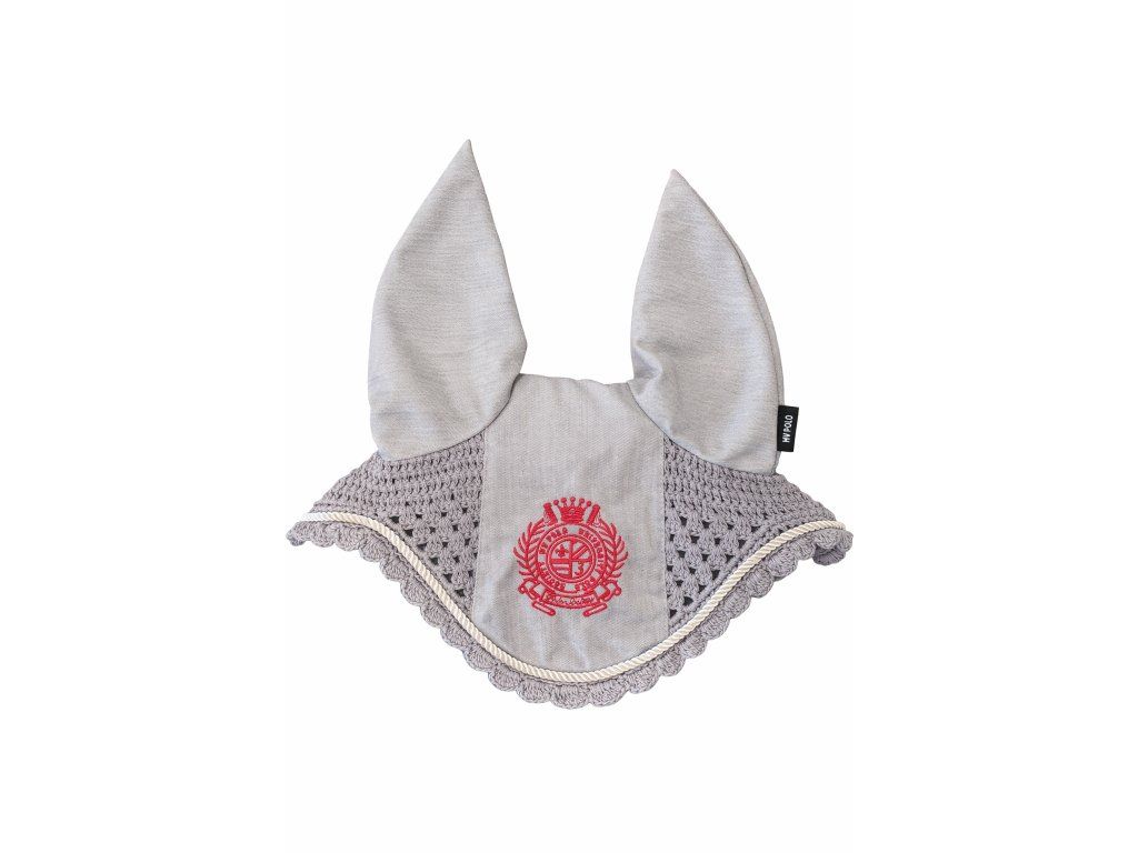 Stylová čabraka chrání uši koně před hmyzem a tlumí okolní hluk. Kombinace pevného materiálu na uších a prodyšné háčkované části zajišťuje pohodlí při nošení. elegantní design doplňuje dekorativní lemování a výrazná výšivka na čele. Ideální pro trénink i závody.