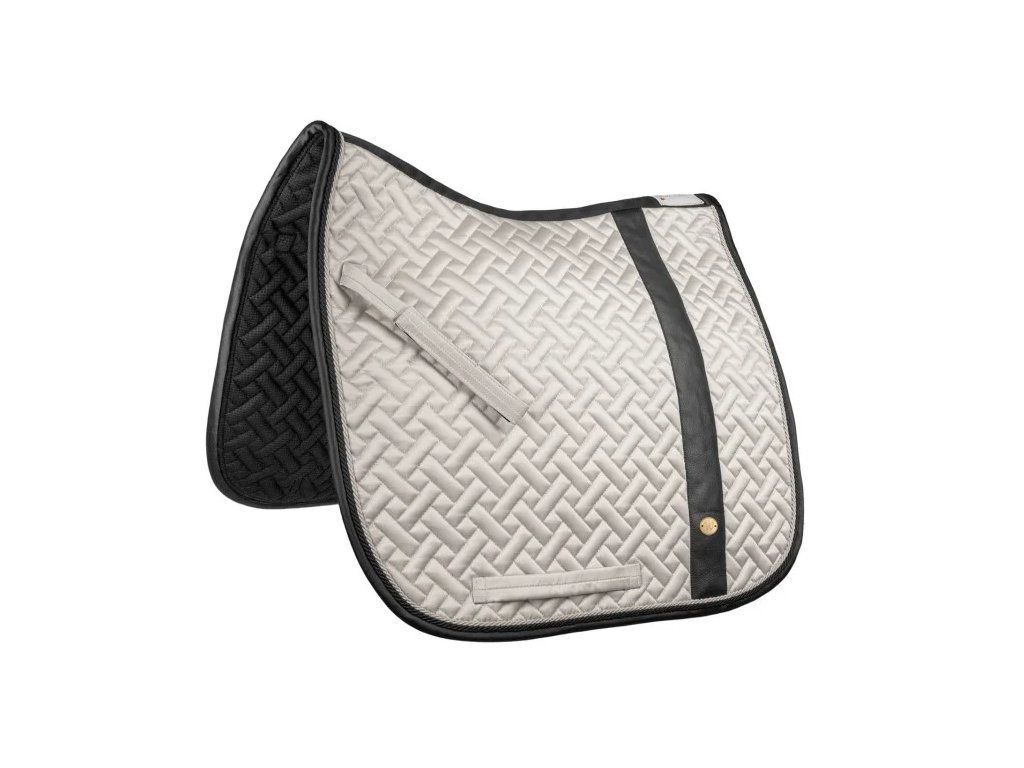 Elegantní podsedlová dečka s moderním geometrickým prošíváním. Dečka je doplněna kontrastními černými prvky, včetně širokého pásu s decentním logem a. Kvalitní materiál a precizní zpracování zajišťují pohodlí pro koně i stabilitu sedla. Stylová volba pro trénink i každodenní ježdění.
