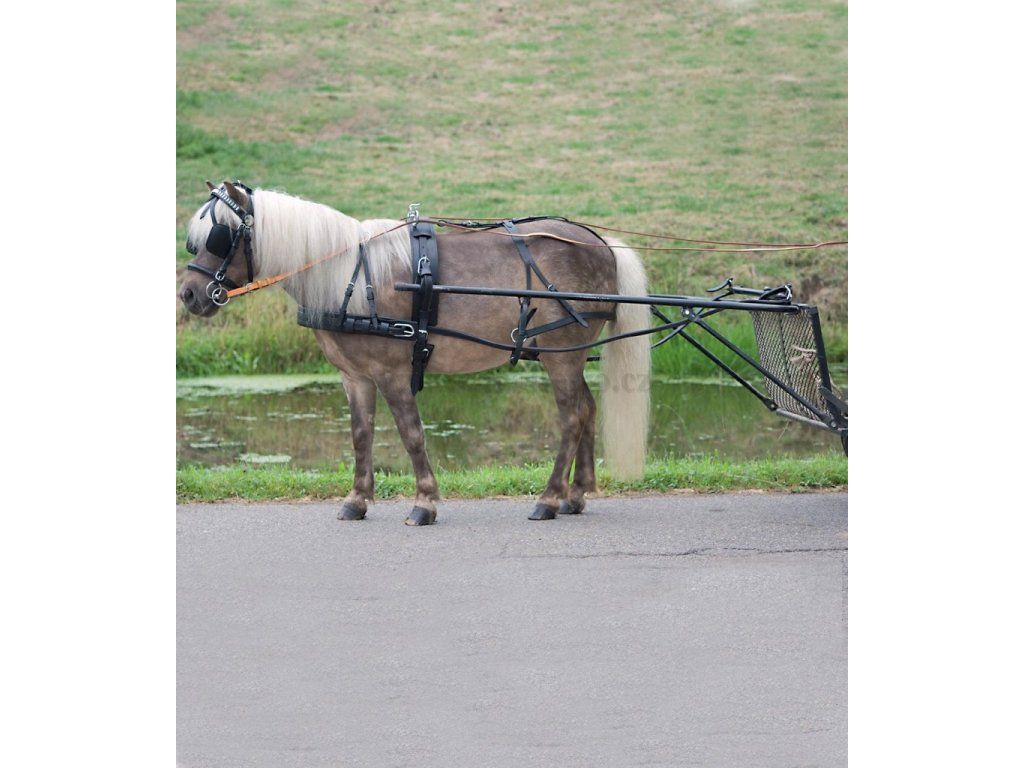 Robustní poprsní postroj vyrobený z kůže, měkce podšitý, vyztužený nylonem. Kompletní s: uzdečkou, klapkami, opratěmi, poprsníkem, zádržními řemeny, podocasníkem, postraňkami, náhřbetníkem.