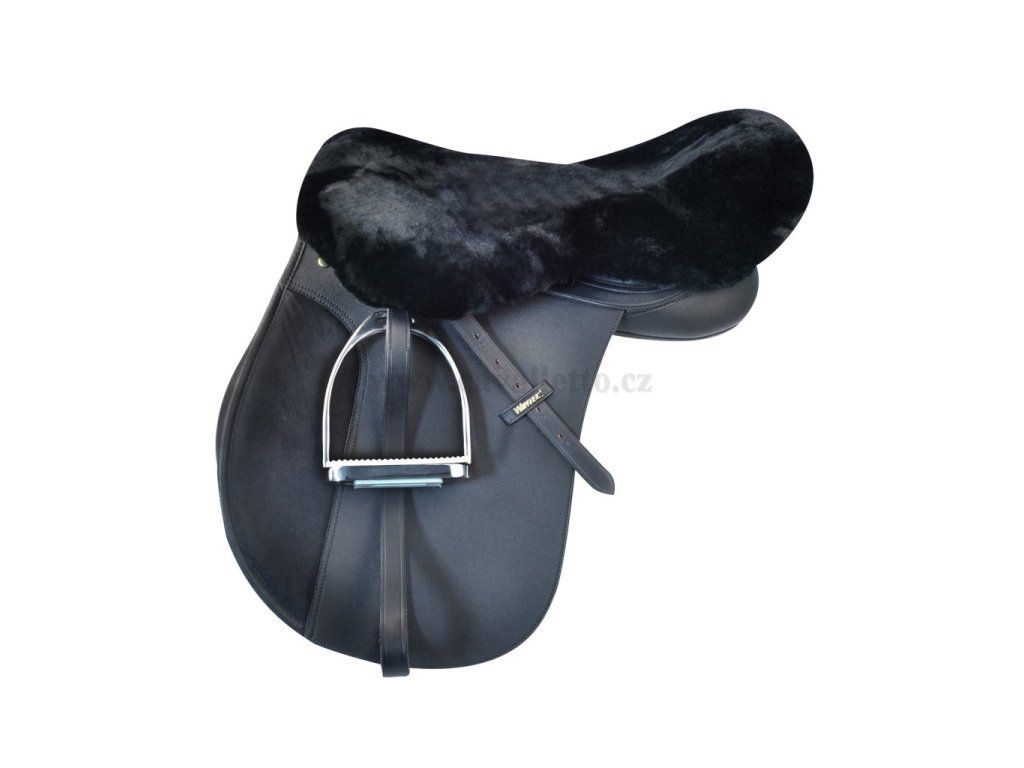Pokožka sedlového sedadla z jehněčí kůže pro optimální pohodlí při sezení. Praktické upevnění s elastickými pásy a nastavitelným Velcro pruhem. Hodí se do anglických sedel ve velikostech 42cm/16" - 46cm/18"