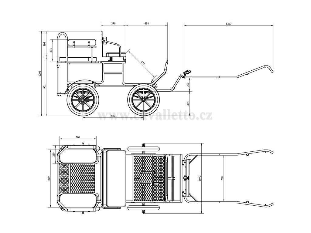Vozík se prodává v základní velikosti A. Pro změnu na větší velikost je nutné přikoupit příslušnou oj.